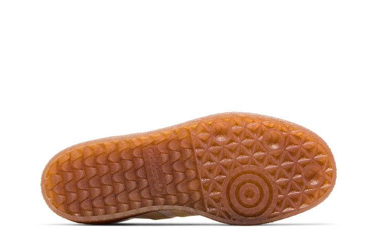 The adidas Samba OG Wonder Taupe (Women's) features a leather and suede upper in a beige hue, with Footwear White three stripes and Gold Metallic Samba branding. The design includes a Footwear White heel tab and gum rubber sole. Originally designed in 1949 by Adolf Dassler, the Samba silhouette has remained iconic through various iterations and cultural appearances. Released on September 1, 2024, the adidas Samba OG Wonder Taupe (Women's) is available now at Side Kicks.