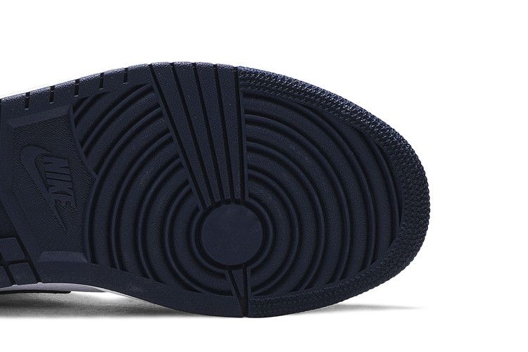 The Nike Air Jordan 1 Mid White Metallic Gold Obsidian features a leather upper with Obsidian and white color blocking, Swoosh logos on the sides, and signature Wings branding on the ankle. Metallic gold Jumpman branding adorns the tongue and footbed. The shoe includes encapsulated Air cushioning and a rubber cupsole with a dual-toned design. Released in August 2019, this edition pays homage to the original Air Jordan 1 with a modern twist.