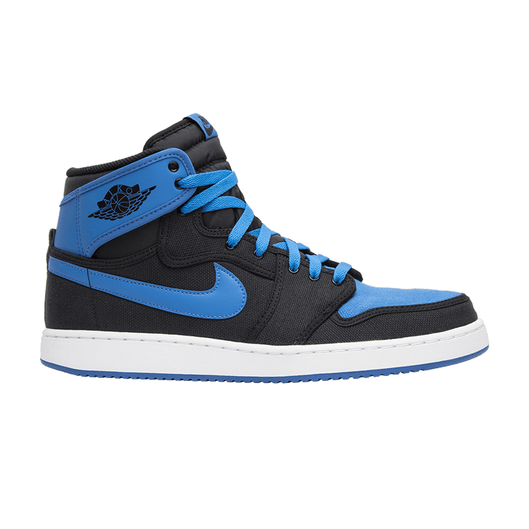 The Jordan 1 Retro AJKO Royal features a durable canvas upper for flexibility and long-lasting wear. It includes the Jordan Wings logo on the side and a Nike logo on the tongue. The cushioned footbed, padded tongue, and collar offer support, while the rubber outsole ensures traction. Its black and blue colorway stands out for both performance and casual wear. Released on August 23, 2014, the Jordan 1 Retro AJKO Royal is available now at Side Kicks.