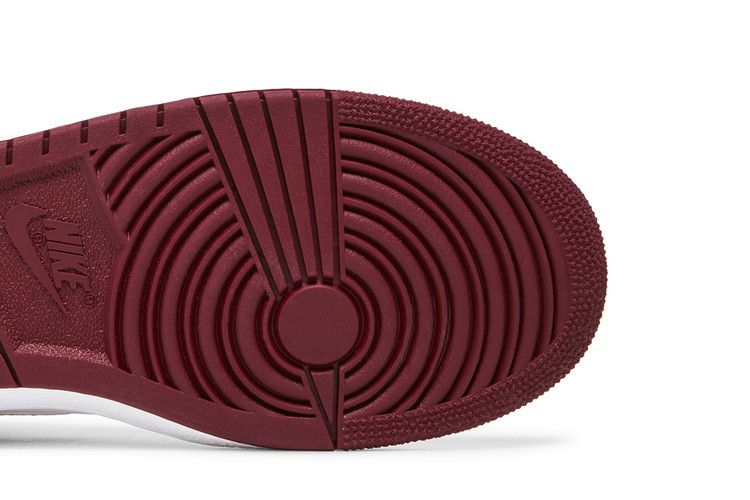 The Jordan 1 Retro High '85 OG Metallic Burgundy features a premium white leather upper with tonal overlays. Metallic Burgundy accents highlight the collar, Swoosh logos, Wings logo, and tongue tag. The rubber outsole includes a pivot traction pattern for grip. Perforations on the vamp enhance breathability, while the lace closure ensures a secure fit. Released on June 22, 2024, the Jordan 1 Retro High '85 OG Metallic Burgundy is available now at Side Kicks.