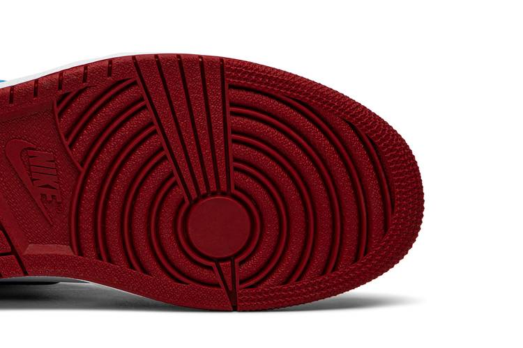 The Jordan 1 Retro High Fearless UNC Chicago sneaker commemorates Michael Jordan's Hall of Fame induction with a Bulls and UNC color scheme. Crafted with a glossy patent leather upper and metallic gold wings logo, this shoe features wise words from Jordan on the insole. The classic AJ1 sole and pivot point tread complete the design, celebrating MJ's legacy.