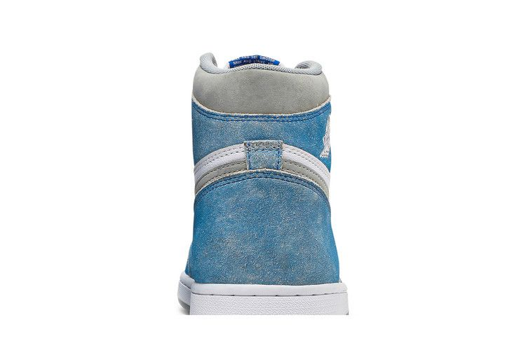 The Air Jordan 1 Retro High Hyper Royal Smoke Grey combines white leather with faded blue suede overlays for a weathered look. Neutral grey accents on the Swoosh and collar, along with OG branding like the Jordan Wings logo and Nike tongue tag, give this high-top sneaker a classic feel. With a standard AJ1 rubber cupsole and Nike Air cushioning in the heel, this shoe offers both style and comfort.