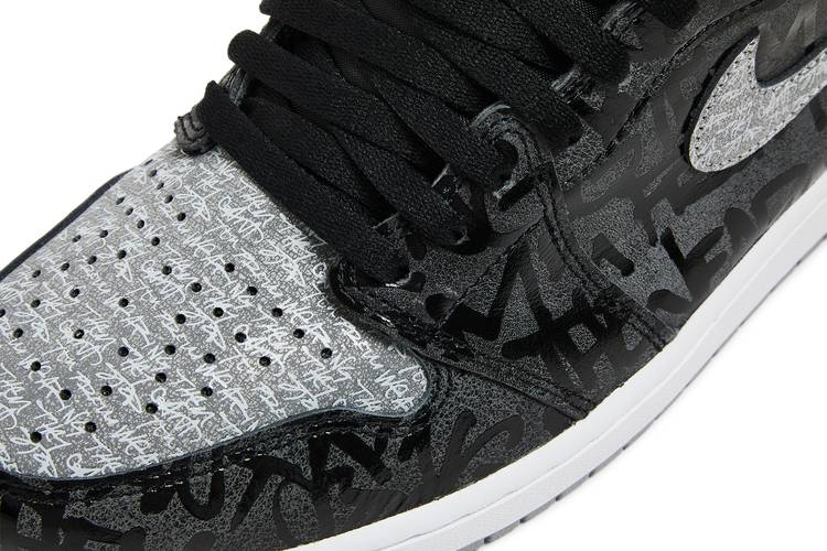 The Air Jordan 1 Retro High OG Rebellionaire features a leather upper with a unique two-tone color blocking design inspired by the OG 'Shadow' colorway. The shoe pays homage to the iconic 'Banned' narrative with a red 'X' on the heel and an all-over print that references an original Air Jordan 1 TV commercial from 1985. The design is completed with a white and grey Air sole for a classic look.