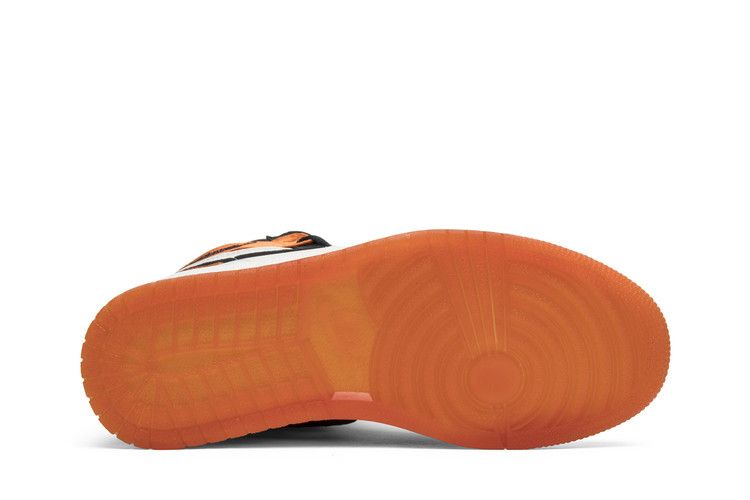 The Air Jordan 1 Retro High Satin Shattered Backboard features a satin upper with premium leather mid-panels and an embroidered "Wings" logo on the collar. Inspired by the 2015 men's release, it maintains the black, starfish, and sail colorway with a translucent orange outsole. Released on May 2018, the Air Jordan 1 Retro High Satin Shattered Backboard is available now at Side Kicks.