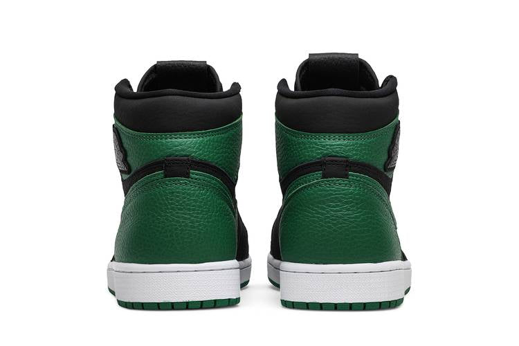 The Air Jordan 1 Retro High Pine Green Black features a black tumbled leather upper with green leather overlays, a Gym Red embroidered tongue tag, sail midsole, and pine green outsole. Released in February 2020, this shoe pays homage to the classic Jordan 1 silhouette with a new color scheme. Designed for both style and performance, this sneaker is a must-have for any Jordan enthusiast.