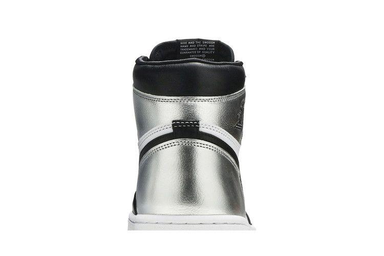 The Air Jordan 1 Retro High OG ‘Silver Toe’ for women pays homage to the Air Jordan 1 ‘Gold Toe’ with its color blocking. Featuring a white leather upper with black overlays, this iteration showcases metallic silver accents on the toe box, heel panel, and collar flap. Other noticeable details include a black leather Swoosh, Jordan Wings logo, and a Nike tag on the tongue. The design inspiration stems from the classic 'Black Toe' theme, offering a new twist in the women’s lineup. Released in February 2021, this sneaker combines crinkled metallic silver leather with white and black leather elements, all sitting atop a white and black sole.