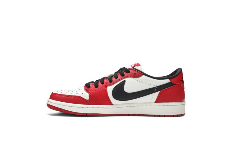 The Jordan 1 Retro Low Chicago (2016) is a limited release sneaker featuring the iconic OG ‘Chicago Bulls’ colorway. The leather upper combines black, Varsity Red, and white, with Nike Air branding on the tongue and the Wings logo at the heel. This low-cut retro design includes a white midsole and Varsity Red outsole for a classic look. Released in February 2016, this sneaker is a stylish addition to any collection.