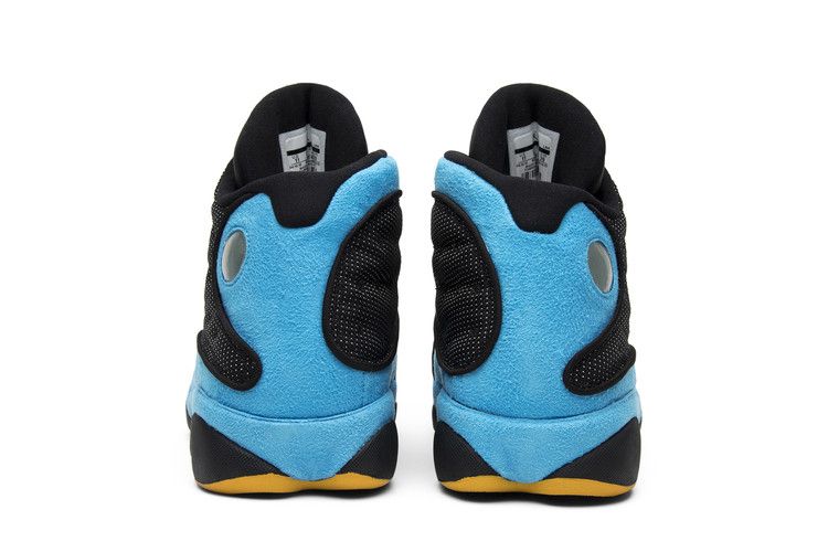 The Air Jordan 13 Retro Chris Paul Away features a black upper with Sunstone and Orion Blue accents, inspired by Chris Paul's New Orleans Hornets era. The design includes the signature holographic "cat eye" detail on the lateral side. Released on November 7, 2015, the Air Jordan 13 Retro Chris Paul Away is available now at Side Kicks.