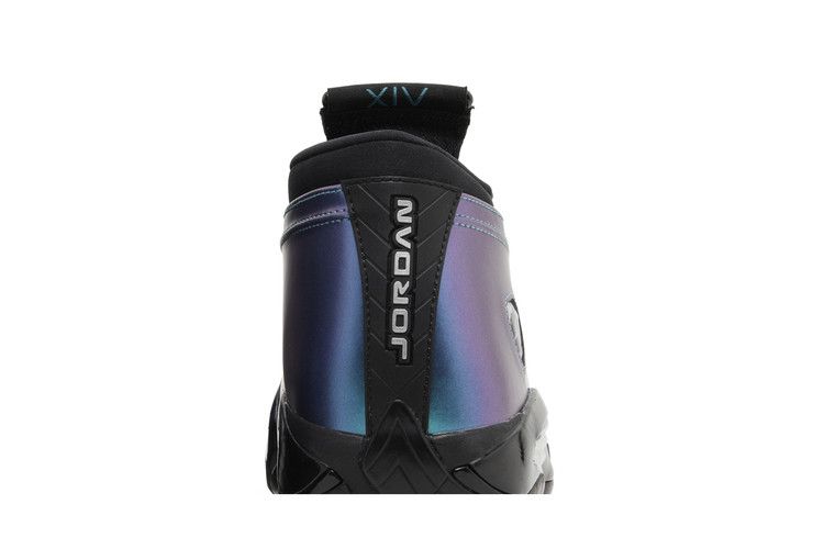 The Jordan 14 Retro Love Letter (Women's) features a metallic leather upper in Mineral Teal with tonal overlays, shifting to Dark Blue and purple under light. The design includes a lateral Jumpman logo, TPU plate for propulsion, and Zoom Air cushioning in the heel and forefoot. A flat tongue displays 'JORDAN' in silver. Released on January 24, 2024, the Jordan 14 Retro Love Letter (Women's) is available now at Side Kicks.