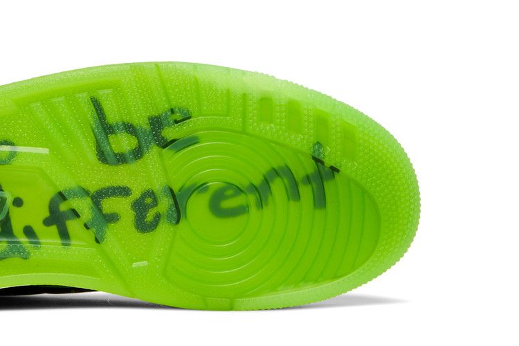 The Jordan 3 Retro Doernbecher Hugo features a navy leather upper with gray elephant print overlays and a Slime Green drip pattern. It includes glow-in-the-dark laces, a transparent heel tab with Hugo’s logo, and a green-tinged translucent outsole displaying "It’s OK to be different." A gold-plated hangtag adds a premium touch. Released on December 2, 2023, the Jordan 3 Retro Doernbecher Hugo is available now at Side Kicks.
