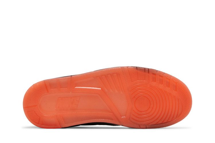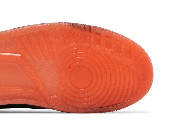The J Balvin x Air Jordan 3 Retro 'Rio' features a black leather upper with grey elephant print overlays at the forefoot and heel. Gradient Solar Flare and Total Crimson Abyss accents adorn the back tab, along with Nike Air branding and J Balvin's smiley face logo. The polyurethane midsole showcases sunset colors, complemented by a red-tinged translucent rubber outsole, inspired by J Balvin's son.