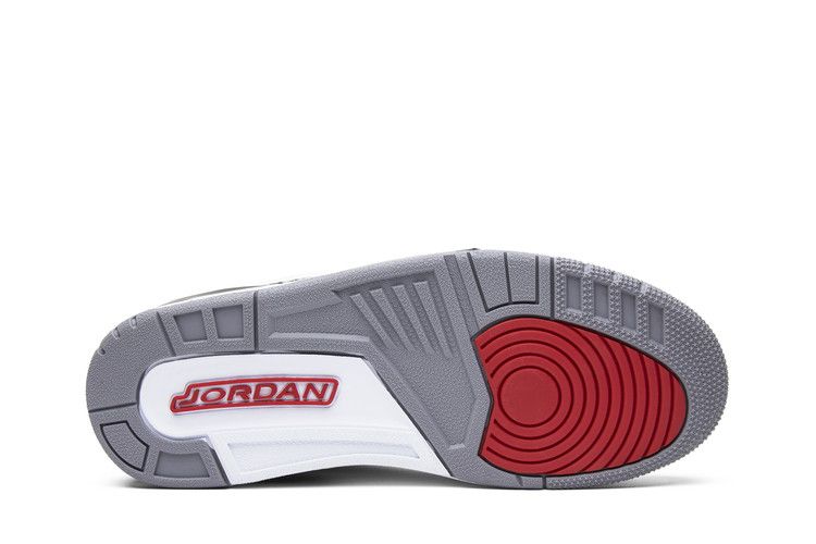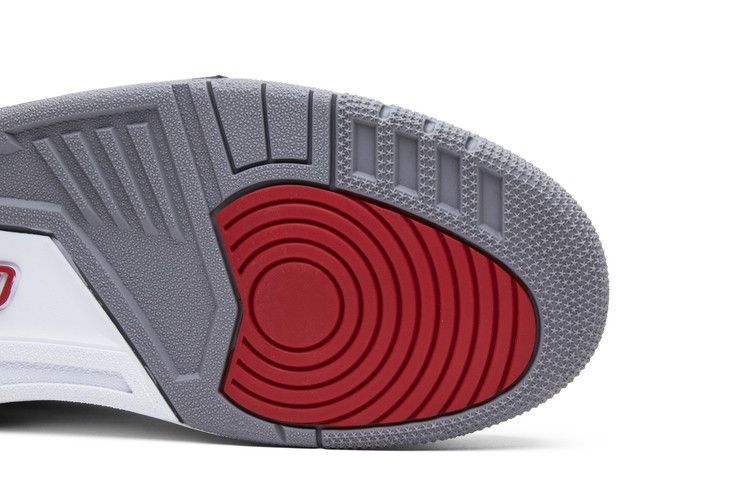 The Nike Air Jordan III Retro White/Cement from 2011 features a classic white leather upper with grey elephant print overlays and red accents. It includes a visible Air-Sole unit for cushioning and a Jumpman logo on the heel. Released on January 22, 2011, the Nike Air Jordan III Retro White/Cement is available now at Side Kicks.