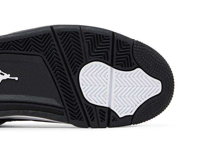 The Air Jordan 4 Retro 'White Thunder' features a black suede upper with white accents on the eyelets and mesh quarter panel. It showcases a white polyurethane midsole with a visible Air-sole heel unit for lightweight cushioning. The design draws inspiration from the Black and Yellow Thunder 4s, incorporating the iconic Jumpman logos on the tongue and heel. The contrast between the black upper and white midsole creates a bold and versatile look, making it a coveted choice for sneaker enthusiasts.