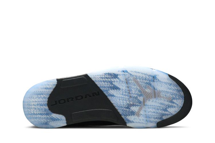 The upper is made of black nylon with plush leather overlays and netted panels. Gold "20" and "21" embroidery on the lateral heel pays tribute to graduates. A black and gold midsole pairs with an icy translucent outsole. Released on May 2021, the Air Jordan 5 Low Wings is available now at Side Kicks.