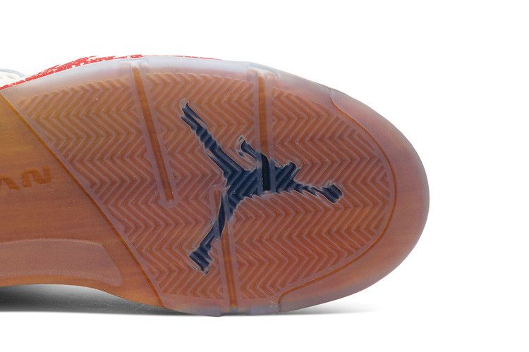 The Air Jordan 5 Retro Trophy Room Ice Blue features a blue suede upper with a white midsole and translucent outsole. Red accents appear on the sock liner and Jumpman-branded tongue, while the heel displays black Jumpman branding and the signature '23' side detailing. The sock liner includes an edition number for exclusivity. Released on May 2019, the Air Jordan 5 Retro Trophy Room Ice Blue is available now at Side Kicks.