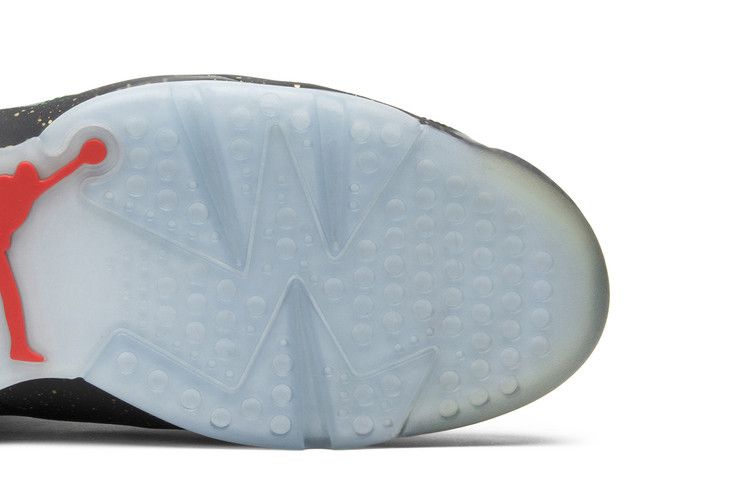 The Jordan 6 Retro Championship features a green leather upper with a black speckled midsole and translucent icy blue outsole. Gold accents on the tongue and championship ring-shaped lace lock highlight its championship theme. The visible Air unit in the heel provides cushioning and impact absorption. Released on June 14, 2014, the Jordan 6 Retro Championship is available now at Side Kicks.