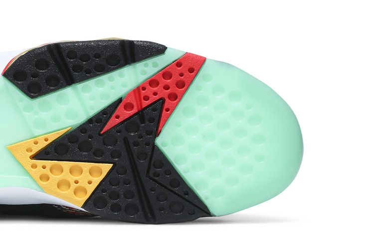 The Air Jordan 7 Retro Greater China features a White/Chile Red, Black, and Metallic Gold color scheme inspired by Beijing's Forbidden City. Its nubuck leather upper includes a glazed dragon motif on the lateral side and Chinese graphics on the medial. Additional details are Chinese characters on the tongue, a gold embroidered Jumpman logo, and Jordan's Olympic jersey number on the heel. The design pairs an Air midsole with a glow-in-the-dark rubber outsole. Released on September 5, 2020, the Air Jordan 7 Retro Greater China is available now at Side Kicks.