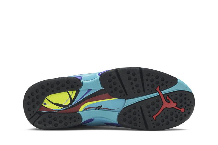 The Jordan 8 Retro Aqua (2007) features a smooth leather and suede upper with a midfoot strap system for secure lockdown. A hard foam midsole delivers cushioning, while the outsole’s traction pattern ensures grip on various surfaces. The design includes a Bright Concord and Aqua Tone graphic on the heel counter, contrasting against the black upper. Released on September 22, 2007, the Jordan 8 Retro Aqua is available now at Side Kicks.