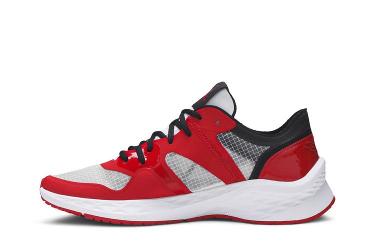The Jordan 85 Racer Chicago features a synthetic leather and textile upper with grid-mesh detailing on the toebox and side panels. Red leather overlays and black accents on the Swoosh, laces, and collar complete the design. The heel showcases a Wings logo, while a Jumpman emblem sits below on the white midsole. Released on January 1, 2020, the Jordan 85 Racer Chicago is available now at Side Kicks.