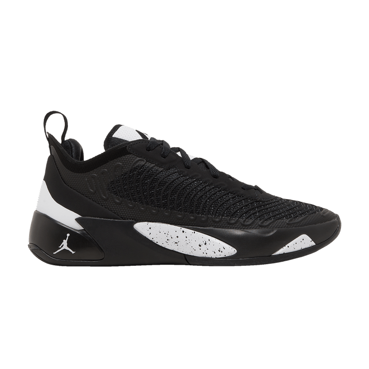 The Jordan Luka 1 Oreo features a black textile upper with a matching collar and perforated synthetic heel overlay. White accents include a heel stabilizer, Jumpman logo on the eyestay, and Luka’s logo on the tongue. The medial side displays "non desistas non exieris" and "Jordan Brand Basketball" text. The IsoPlate system and Formula 23 foam midsole provide support and comfort, with speckled white patches and a Jumpman motif on the lateral heel. Released on December 10, 2022, the Jordan Luka 1 Oreo is available now at Side Kicks.