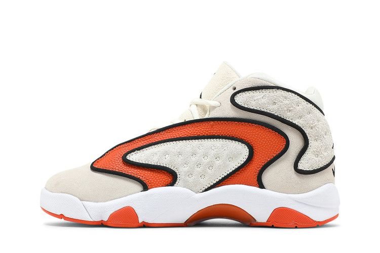 The women's Air Jordan OG Coconut Milk Orange (W) features a Coconut Milk Durabuck upper with orange basketball leather overlays and black piping. Embroidered black Jumpman and "W" logos complete the heel design. Released on May 2021, the women's Air Jordan OG Coconut Milk Orange (W) is available now at Side Kicks.