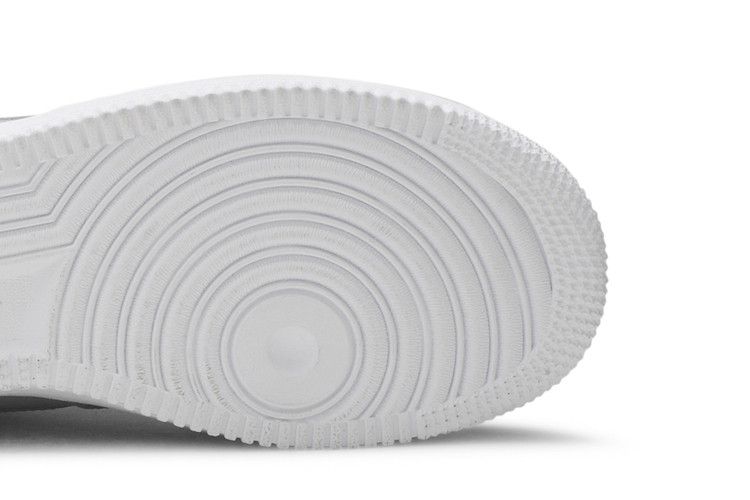 The Nike Air Force 1 '07 Low White Wolf Gray Sole features a white leather upper with Wolf Gray accents on the Swoosh outline, tongue, and heel branding. It includes a miniature vamp Swoosh, perforated toebox, white flat laces, and a Metallic Silver lace dubrae. The sole unit combines a white midsole with a Wolf Gray rubber outsole and 'AIR' branding. Released on December 20, 2022, the Nike Air Force 1 '07 Low White Wolf Gray Sole is available now at Side Kicks.