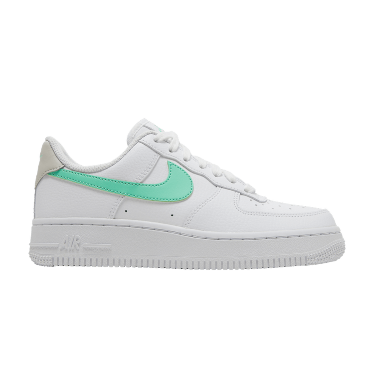 The Nike Air Force 1 Low Green Glow (Women’s) features a textured white leather upper with perforated toe and side panels for breathability. Light green leather accents the Swoosh, while pebbled bone leather forms the heel tab with debossed branding. The padded mesh tongue and sock liner enhance comfort, paired with a light green insole. A white foam midsole with Air cushioning sits atop a grooved rubber outsole for traction. Released on April 14, 2021, the Nike Air Force 1 Low Green Glow (Women’s) is available now at Side Kicks.