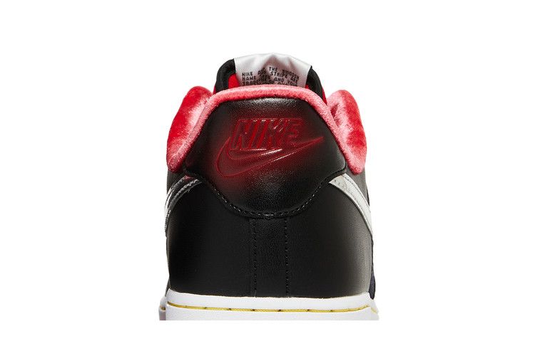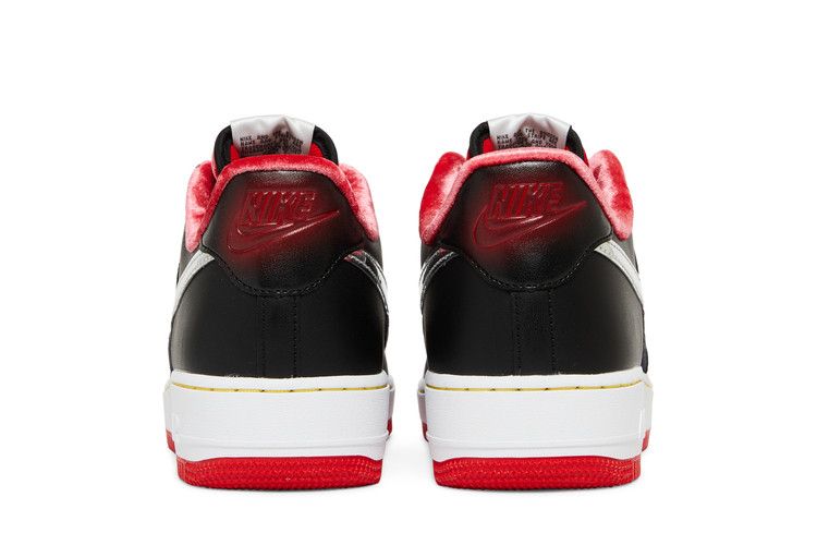 The Nike Air Force 1 Low Houston (2022) features a black leather upper with velvet toe box and side panels. Metallic Silver Swooshes contrast the design, while University Red velvet lines the tongue and interior. A white midsole and University Red outsole complete the look, accented by an H-Town charm on the laces. Released on November 12, 2022, the Nike Air Force 1 Low Houston (2022) is available now at Side Kicks.