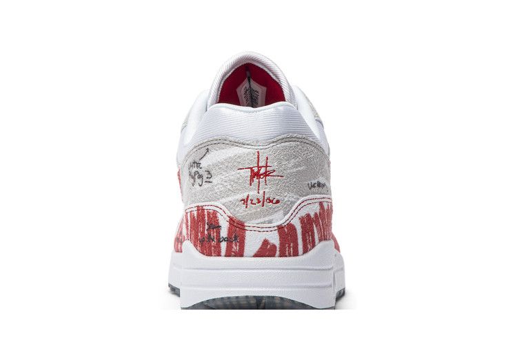 The Nike Air Max 1 Tinker Sketch to Shelf Black features a black upper made of leather, suede, and synthetic overlays. Hand-drawn lines and unfinished detailing create a sketch-like aesthetic, with a white-outlined Swoosh for contrast. The tongue and laces follow the black-and-white color scheme, while the midsole includes visible Air Max cushioning. Released on August 9, 2019, the Nike Air Max 1 Tinker Sketch to Shelf Black is available now at Side Kicks.