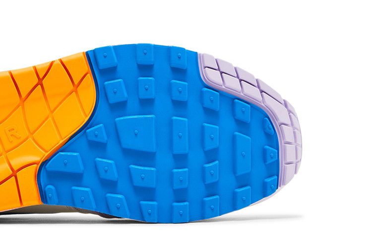 The Nike Air Max 1 White Alchemy Pink (Women's) features a Crisp White mesh upper with Lilac Bloom suede mudguard and Alchemy Pink leather Swoosh logos. Designed by Tinker Hatfield, it includes visible Air Max cushioning and a multicolored rubber outsole in Lilac Bloom, Photo Blue, and Sundial. Released on May 1, 2024, the Nike Air Max 1 White Alchemy Pink (Women's) is available now at Side Kicks.