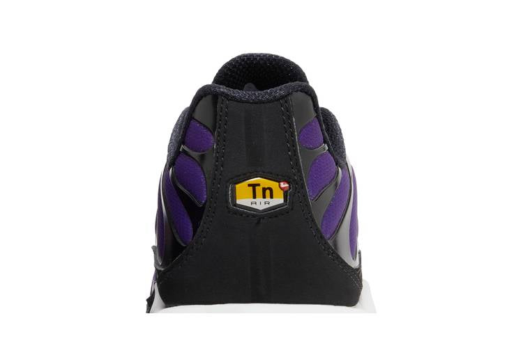 The Nike Air Max Plus OG Voltage Purple (2024) features a vibrant colorway of Voltage Purple with Total Orange accents. The upper is constructed of mesh and leather, with wavy lines for support. Total Orange accents can be seen on various parts of the shoe, including the tongue, side panel, and rubber tread. Visible Air Max units in the forefoot and heel showcase the Total Orange color. The sneaker also offers a shell-like fit with a discreet front lacing system.
