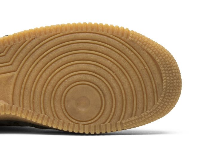 The Nike SF Air Force 1 Faded Olive features a high-top silhouette with a military-inspired olive upper made of leather and ballistic nylon for durability. It includes functional details like paracord straps, dual zippers, and removable ankle straps for adjustable support. The design retains classic Air Force 1 elements, including the Air-cushioned sole unit and forefoot styling. Released on November 2016, the Nike SF Air Force 1 Faded Olive is available now at Side Kicks.